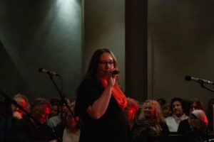 ünschen übrig, aber das änderte nichts an der Besucherflut und der guten Stimmung, die von Beginn an in der bis auf den letzten Platz gefüllten Kirche herrschte. Nach Begrüßung durch Pfarrer Dr. Tobias Graßmann zündeten VOICES ein Feuerwerk aus mitreißenden Gospels, gekrönt von dem erstmals vorgetragenen ‚In Your Arms‘, gekonnt interpretiert von Solistin Petra Riederer. Schnell war der Flow zwischen Chor und Publikum gefunden, führte zu spürbarer Intensität bei den Pop-Songs ‚Million Dreams‘, ‚Fix You‘ und ‚Shallow‘. Begeisterung wechselte sich ab mit Berührung, brandender Applaus mit ergreifender Stille. Special Guest Sylivia Baumann wurde zweifelsohne zum Star des Abends, führte mit kraftvoller Präsenz und treffsicherer Stimme das Ensemble zu den Höhepunkten des Konzerts. Mit charmant frecher Moderation führte Paula Jo Ihle kurzweilig durch den Abend. Einmal mehr spielten VOICES unter der musikalischen Leitung von Fred Elsner ihr klangvolles Können voll aus und zogen das Publikum vom ersten bis zum letzten Moment in ihrem Bann. Verabschiedet in seinem Amt wurde nach 23 Jahren und unzähligen von ihm organisierten Auftritten Vorsitzender und Chormanager Rolf Schlegelmilch, der dem Chor als Tenor erhalten bleibt. Besonderes Lob fand die bereits seit 2000 bestehende Zusammenarbeit zwischen Gethsemane-Gemeinde und VOICES.